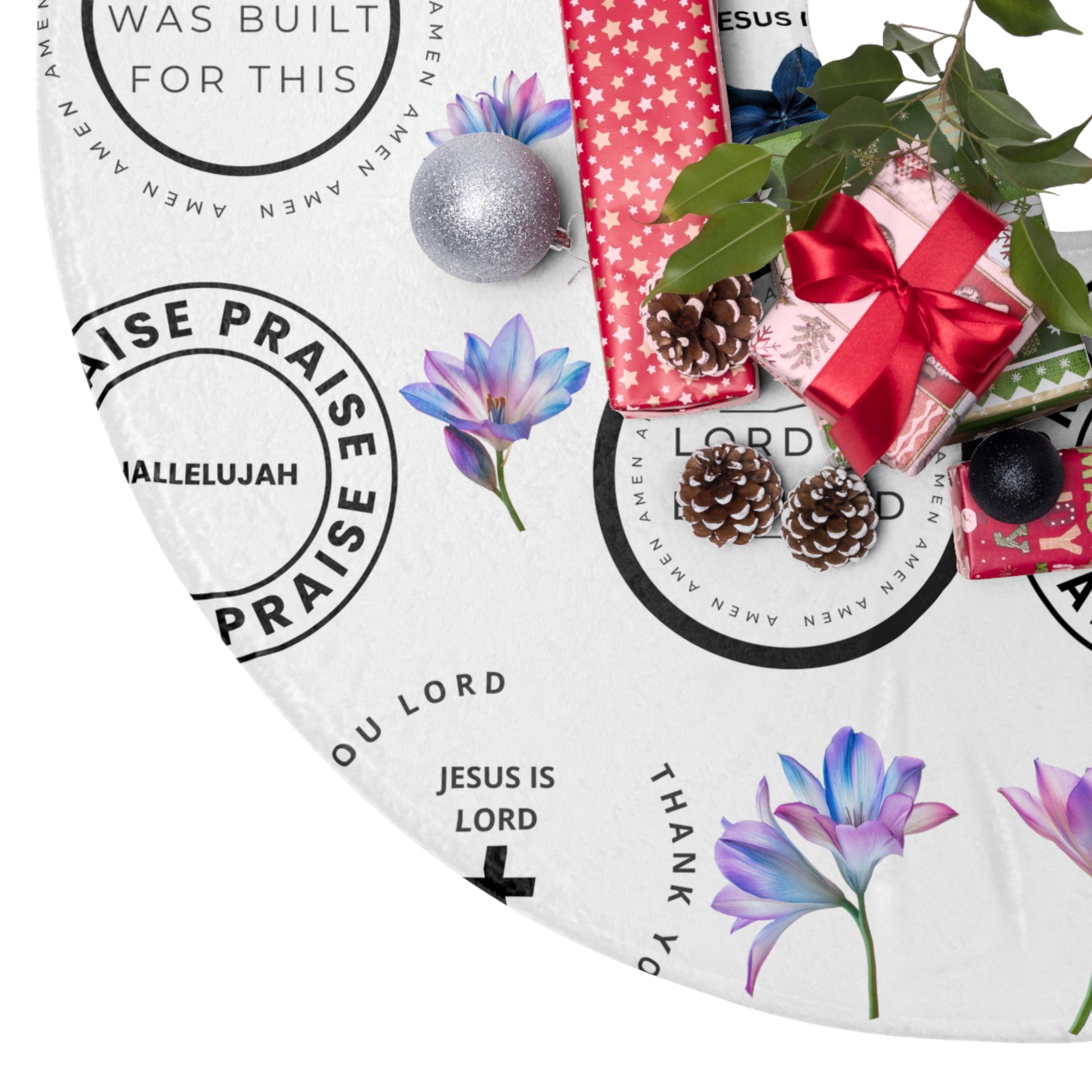 Let this tree skirt inspire joy in every season — a reminder to praise the Lord in all things, for His love endures forever.